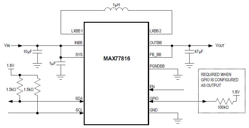 Maxim Integrated ofrece a través de la Mouser Electgronics el MAX77816, un regulador Buck-Boot para tensiones de salida de 2,6 V a 5,14 V. El rango de tensiones de entrada va de 2,3 a 5,5 V y la corriente soportada de conmutación es de 5 A (tip).