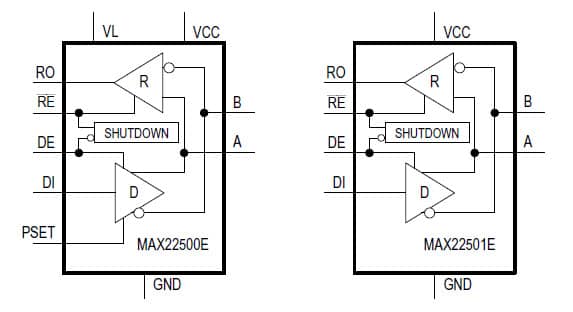 MAX22500E y MAX22501E Transceptores RS485 y RS482 de Maxim