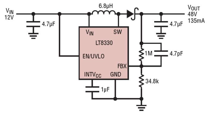 Los convertidores de la serie LT833x, obtenidos a través de Mouser Electronics, operan en modo corriente utilizando sólo un pino de retroalimentación para generar las tensiones positivas o negativas de salida. Las tensiones de entrada pueden variar entre 3 y 40 V y la salida de 4,5 a 100 V con corrientes de 0,5 A a 2 A, según el tipo,