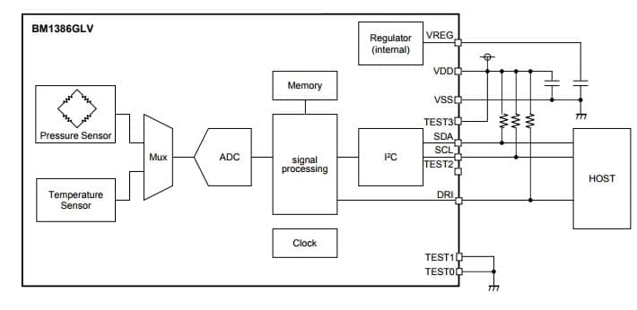 Disponible a través de Mouser Electronics este sensor piezo-resistivo tiene un rango de actuación de 300 hPa a 1300 hPa que proporciona salida en interfaz I2C. El sensor mide sólo 2 x 2 x 1 mm.
