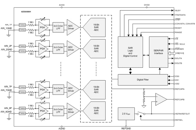 ADS8588H y ADS5898H ADCs de Muestreo Simultáneo de Texas Instruments