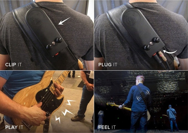 Pero la idea tiene aplicaciones prácticas y ahora nos visibles. Así, el músico tocado de bajo Yerko Sepulveda desarrolló un altavoz o transductor de graves que permite sentir los sonidos directamente en su espalda a través de un "vestible" (wearable).