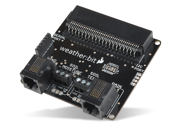 Esta tarjeta contiene todos los recursos para la elaboración de una estación meteorológica usando un micro bit de Sparkfun. Disponible en Mouser Electronics en el enlace que damos en la señal del artículo, mide humedad, presión, temperatura y luz y tiene conector para humedad del suelo y temperatura del suelo. También dispone de conexiones para anemómetro y medidores de lluvia (higrómetro).