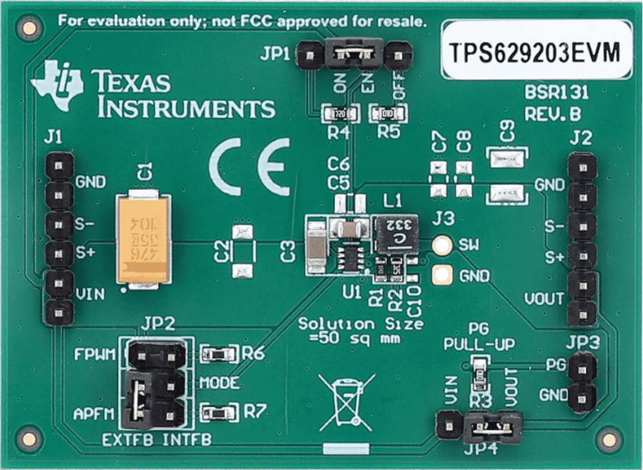El módulo de evaluación de convertidores (EVM) TPS629203EVM de Texas Instruments facilita la evaluación del convertidor reductor de 300 mA TPS629203 en una carcasa pequeña SOT-583. El módulo de evaluación produce un voltaje de salida de 3,3 V a partir de un voltaje de entrada de entre 3 V y 17 V. El Texas Instruments TPS629203 es un convertidor reductor de baja Io y alta eficiencia que se utiliza en diversas aplicaciones industriales, electrónicas empresariales y personales. Estas aplicaciones incluyen automatización de fábricas y edificios, cámaras de red IP, PC industriales, conmutadores de centros de datos, servoaccionamientos, computación móvil e integrada y cualquier aplicación con tensión de entrada 12VIN o batería de litio de 1-4 celdas.