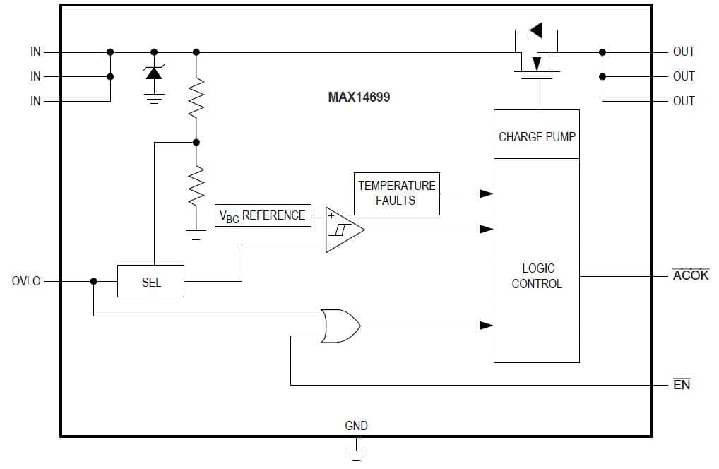 Los dispositivos de protección contra sobretensión MAX-MAX10699 de MAX para elevar hasta 100 V en fuentes hasta 28 V. El dispositivo cuenta con un FET interno de 38 mOhms de resistencia de conducción y tiene una capacidad de corriente continua de 4,5 A.