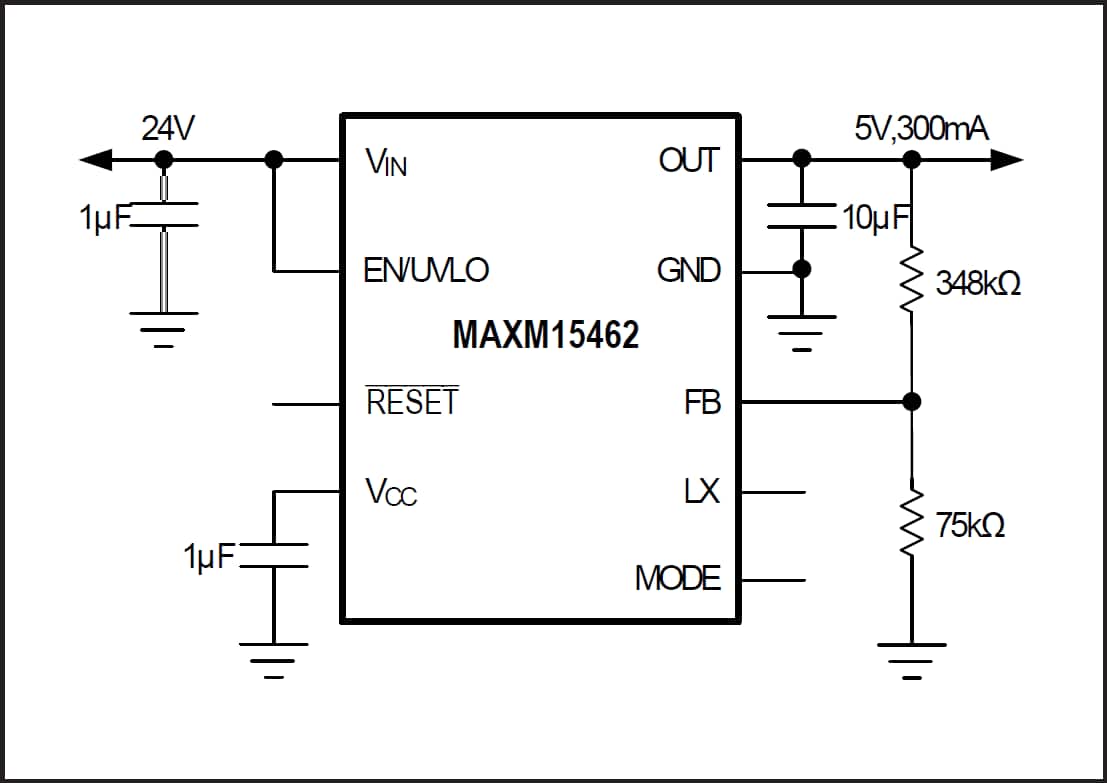 Mouser Electronics está ofreciendo los módulos de potencia Step-Down MAXM15462 de Maxim para tensiones de entrada de 4,5 V a 42 V y tensiones de salida de 0,9 a 5 V y corriente de 300 mA. Los módulos se pueden utilizar en aplicaciones PWM y se suministran en envoltorios compactos de 10 patillas. El dispositivo puede funcionar en modo fijo como modo ajustable.