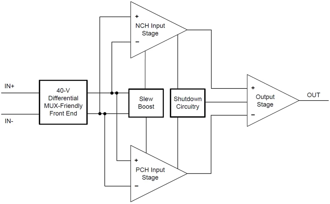 Texas Instruments distribuye sus productos a través de Mouser Electronics. Esta es una serie de amplificadores operacionales de baja potencia con bajo offset. La familia es para tensiones de hasta 40 V y tiene un tajas de crecimiento de +/- 300 uV. La banda pasante es de 1 MHz.