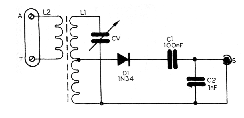 El circuito consiste en una etapa de sintonización y detección de señales de buena sensibilidad, sin la necesidad de circuitos activos, ya que el volumen será controlado en el propio amplificador. El circuito completo del sintonizador se muestra en la figura 1.
