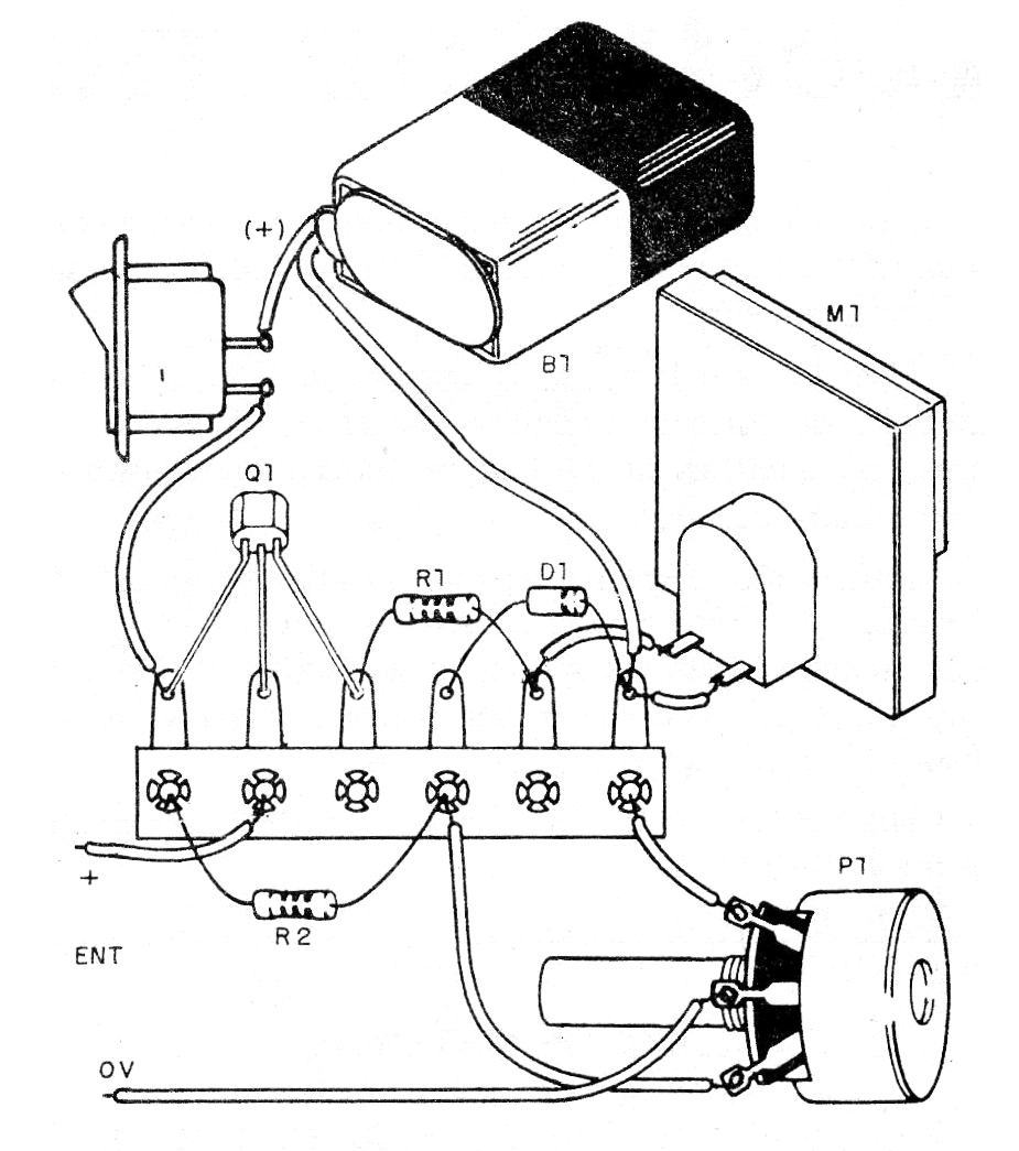 Este circuito posibilita la medida de tensiones en la escala de 0 a 6 V u otra con cambios de los componentes y una buena sensibilidad de entrada. El indicador es analógico (microamperímetro) que puede obtenerse de equipos de sonido antiguos.