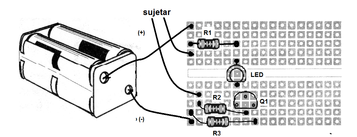 La finalidad de este proyecto es educativa, mostrando cómo funciona un transistor con un montaje simple en una matriz de contactos.
