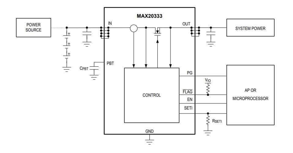 MAX20333 Llaves limitadoras de corriente ajustables de Maxim