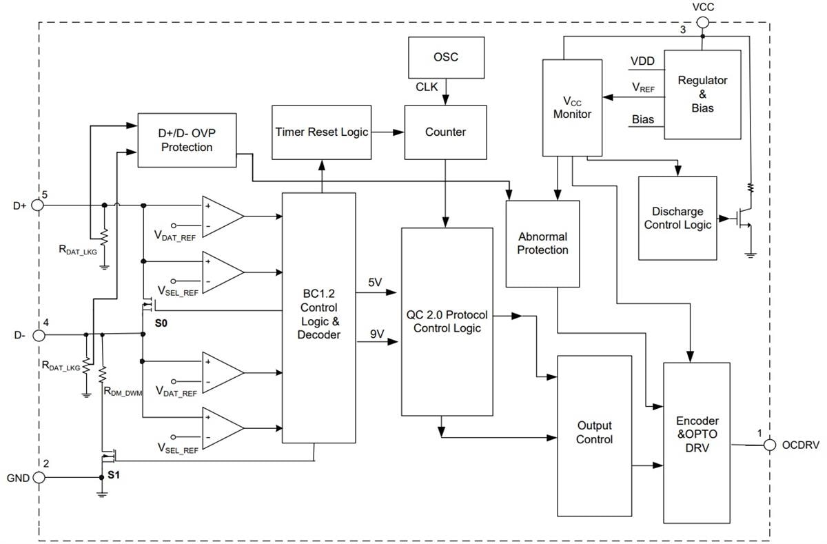 Fabricado por Diodes Incorporated y distribuido por Mouser Electronics, este controlador tiene un decodificador para el protocolo Qualcomm QC 2.0 que transfiere la señal a través de un acoplador óptico. El dispositivo es adecuado para aplicaciones en adaptadores de CA/CC y cargadores de batería.