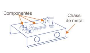 Se entiende por chasis de un equipo electrónico, la parte que sostiene los componentes que lo forman. En los aparatos antiguos valvulados, por ejemplo, se utiliza un chasis de metal que al mismo que sostiene los sockets de las válvulas y otros componentes mayores también sirve como un conductor de referencia, tierra o 0 V, por ejemplo, como muestra la figura 1.