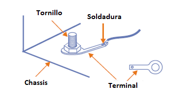 Diversos son los metales que se pueden utilizar en la confección de un chasis como, por ejemplo, el aluminio, hierro, latón, etc. Se debe observar que existen metales en los que la soldadura no se adhiere, en cuyo caso las conexiones de tierra deben realizarse en terminales presos por tornillos, como se muestra en la figura 2.