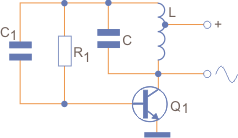 La bobina L y el capacitor C determinan la frecuencia de funcionamiento del oscilador. Tenga en cuenta que la bobina tiene una toma. Por un lado sirve como carga y por el otro proporciona una señal de retroalimentación retrasada de 180 grados.