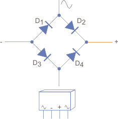 En la práctica, se pueden usar 4 diodos independientes o un conjunto de diodos ya disponibles en una sola carcasa, como se muestra en la figura 2.