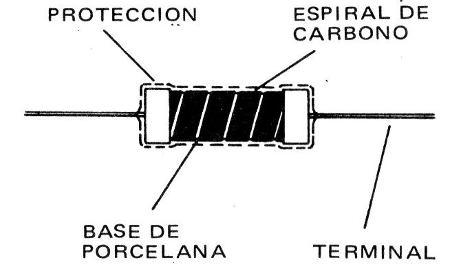 Un resistor está formado por un «tubo» de porcelana (cerámica) cubierto por una capa de carbono formando una estructura, como se indica en la fig. 4.