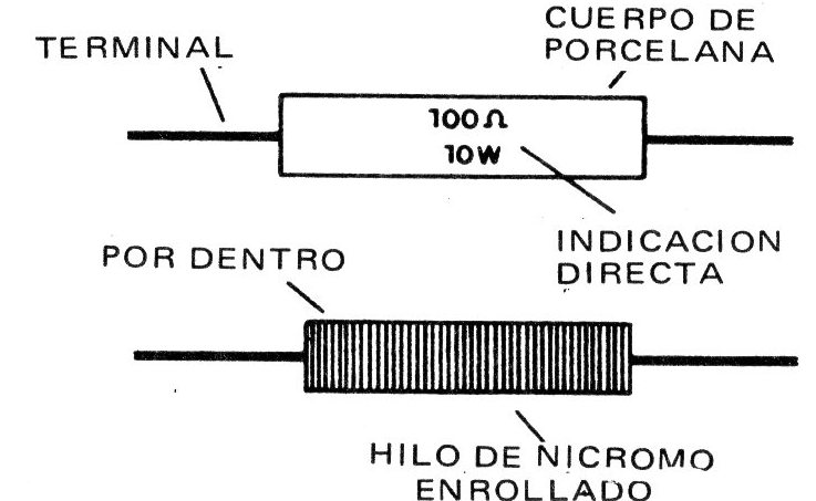 Otro tipo de resistor, denominado de «hilo» o bobinado, es la que se indica en la fig. 5, siendo usada cuando se precisan grandes disipaciones, o sea, para trabajar en «caliente».