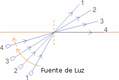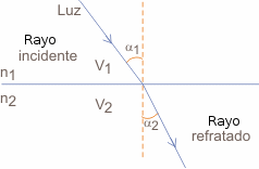 Este valor se llama "índice de refracción". Por lo tanto, para el caso de los medios aire-agua, el índice de refracción es 1.33, mientras que para el vidrio de aire ordinario, este índice es 1.52 y para el par aire-cuarzo es 1.46.