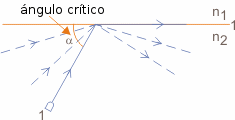 Cualquier rayo de luz que luego golpee el vidrio desde un segundo ángulo igual o mayor que este ángulo crítico ya no puede pasar al otro lado, es decir, está "pegado" al vidrio.