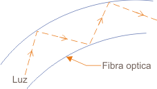 Incluso si el material en el que se produce forma una serie de curvas (siempre que no estén demasiado cerca del punto de reducir el ángulo de incidencia a un valor inferior al crítico), la luz puede acompañar al material y transmitirse a distancia, como se muestra en la figura 6.